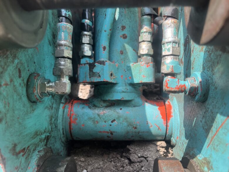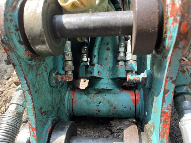 現地到着後に確認したところ、アダプターが変形し、そこから作動油が漏れ出している状態でした。このままでは使用継続ができないため、早急な修理対応が必要でした。