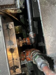 まず、変形していたアダプターを慎重に取り外します。接続部の清掃を行った後、新品のアダプターを取り付け。確実な固定を行い、油圧ラインの密閉性を確保しました。