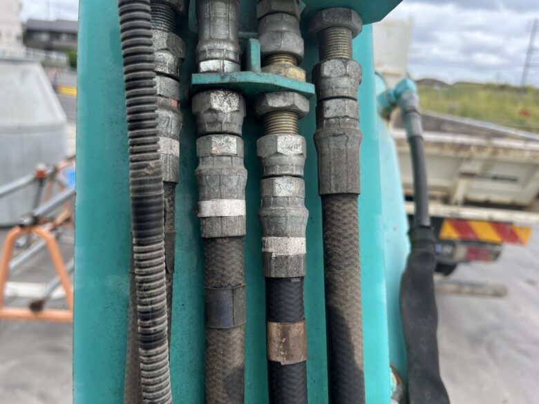 今回のように油漏れは突然発生し、放置すると稼働停止につながる恐れがあります。当社ではサービスカーによる現地対応でホース製作から交換まで即日完結が可能です。