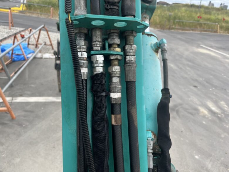 まずはカバー類を取り外し、対象となる劣化したホースを慎重に取り外しました。続いて、現場にて同等仕様の新しいホースを製作し、その場で取り付けを実施。作業後には試運転を行い、油漏れや動作に問題がないことを確認しました。
