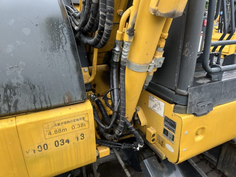 今回のようなホースの劣化は、外見上は軽度に見えても内部から進行しているケースが多く、破裂や油漏れといったトラブルに発展しかねません。特にブームやアームなどの可動部に接続されているホースは振動や曲げ応力が大きく、劣化が進みやすいため、定期的な点検・交換が重要です。