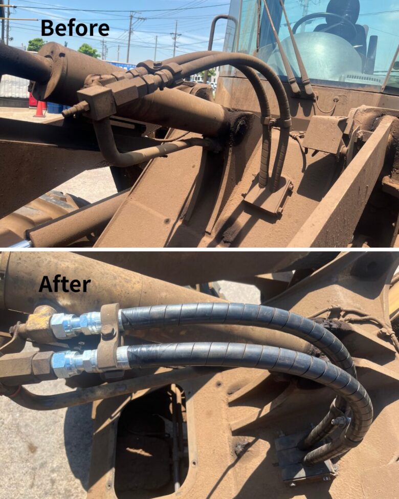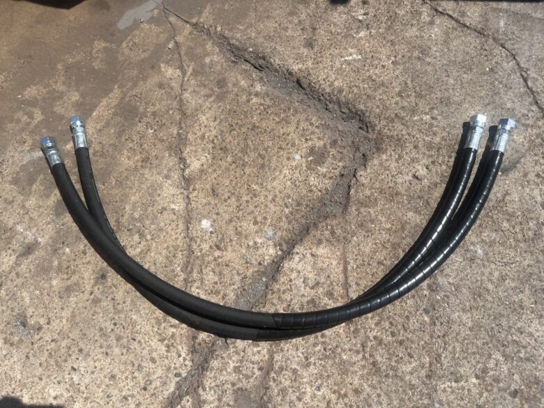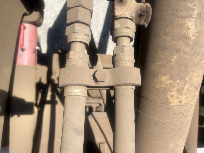 油圧ホースは一見すると大丈夫そうに見えても、擦れや劣化が進んでいると突然破裂する危険があります。特に今回のようにクランプ部分で擦れて傷んでいるケースは、放置すると大きなトラブルや稼働停止につながる可能性があります。定期的な点検と早めの交換が、機械を長く安心して使い続けるためにはとても大切です。「ちょっときになるな」「そろそ交換時期かな」と感じたら、どうぞお気軽にご相談ください!
