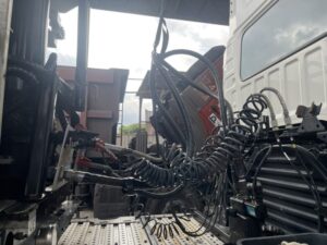 東海市のお客様より、「トレーラー渡りホースから油漏れしているので至急対応してほしい」とのご依頼をいただきました。油圧ホースのトラブルは放置すると大きな故障や走行不能につながるため、現場に急行して対応いたしました。 到着後 […]