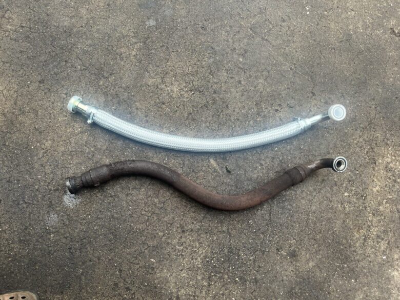 4,劣化したリフトシリンダーホースを慎重に取り外し