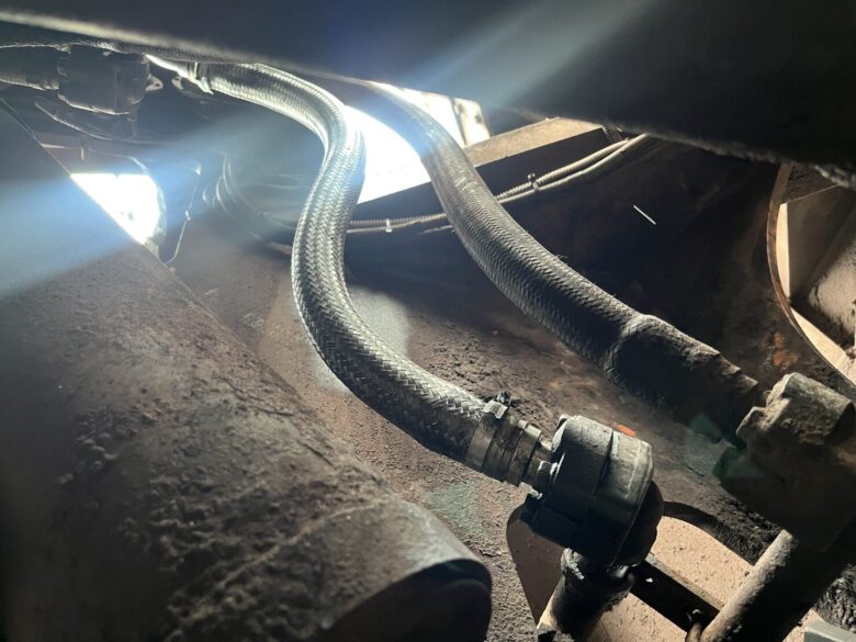 油圧ホースの劣化や破損は、高圧作動油の漏れや稼働停止の原因となります。特にリフトシリンダー周辺は不可が大きく、定期的な点検と早めの交換が欠かせません。弊社では、現場・工場両対応の油圧ホース製作体制により、迅速かつ確実な修理を実現しています。大型ホイールローダーや建設機械の油圧トラブルにお困りの際は、ぜひお気軽にご相談ください!!