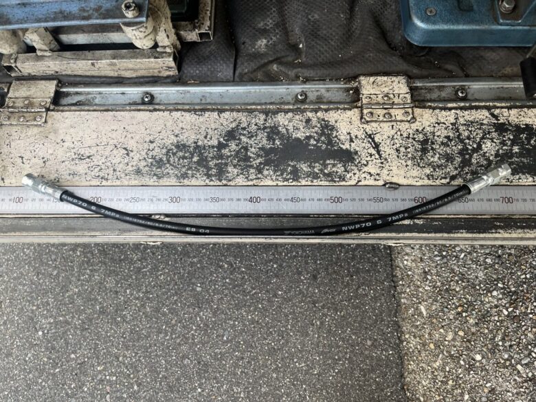 その後、現場にて同仕様のパイロットホースを製作。サイズや口金の規格を正確に合わせて作成することで、純正同様の性能を確保できます。製作したホースをその場で取り付け、各部のの締め付けを確認しながら慎重に組み付けを行いました。